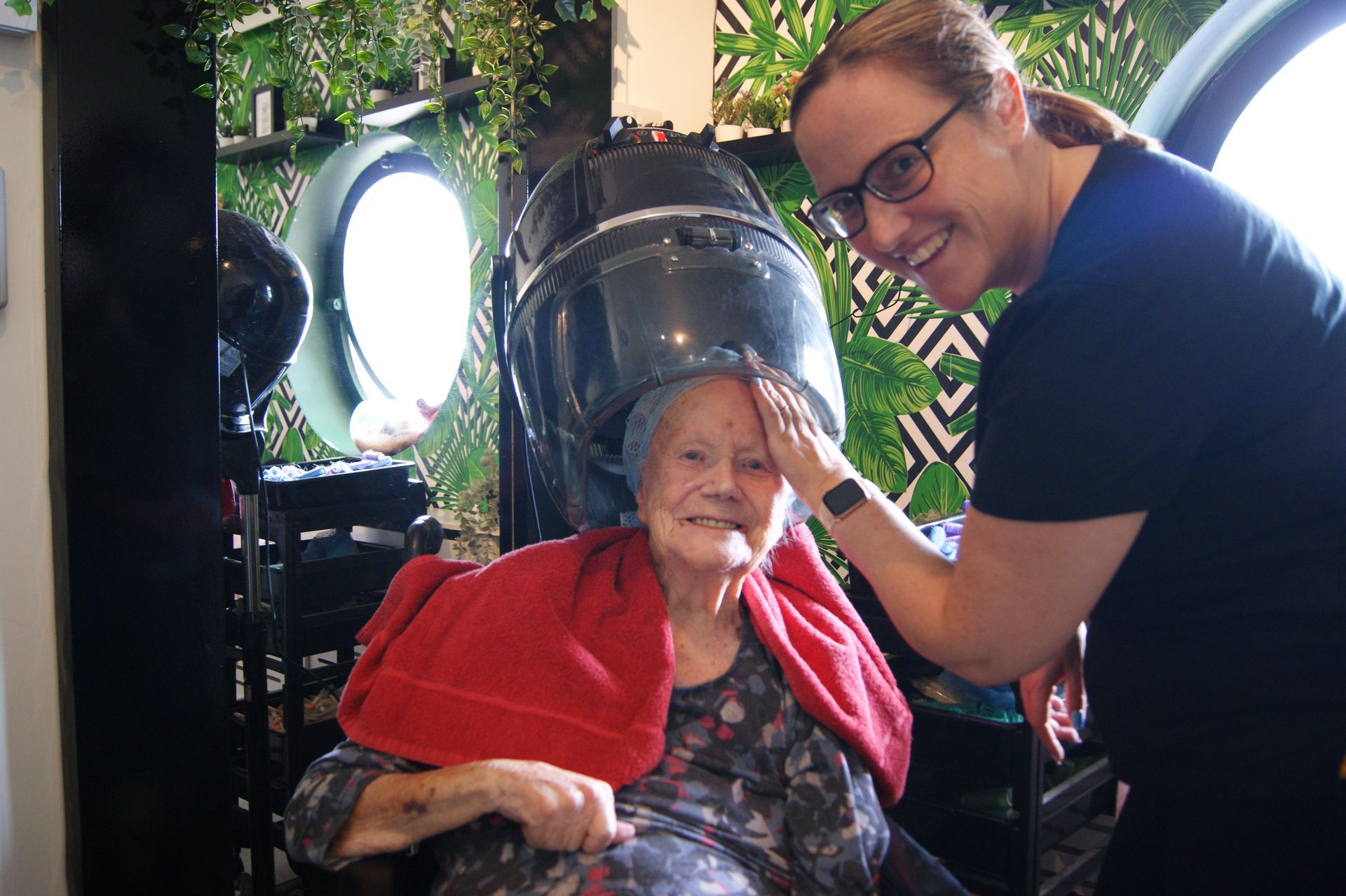 Our activity coordinator Julie is a qualified hairdresser and barber. This alongside our state-of-the-art salon, enables us to provide this service to the residents of Newford Nursing Home on a weekly basis. Be it a weekly set, a perm or a shave and trim, we have you covered.