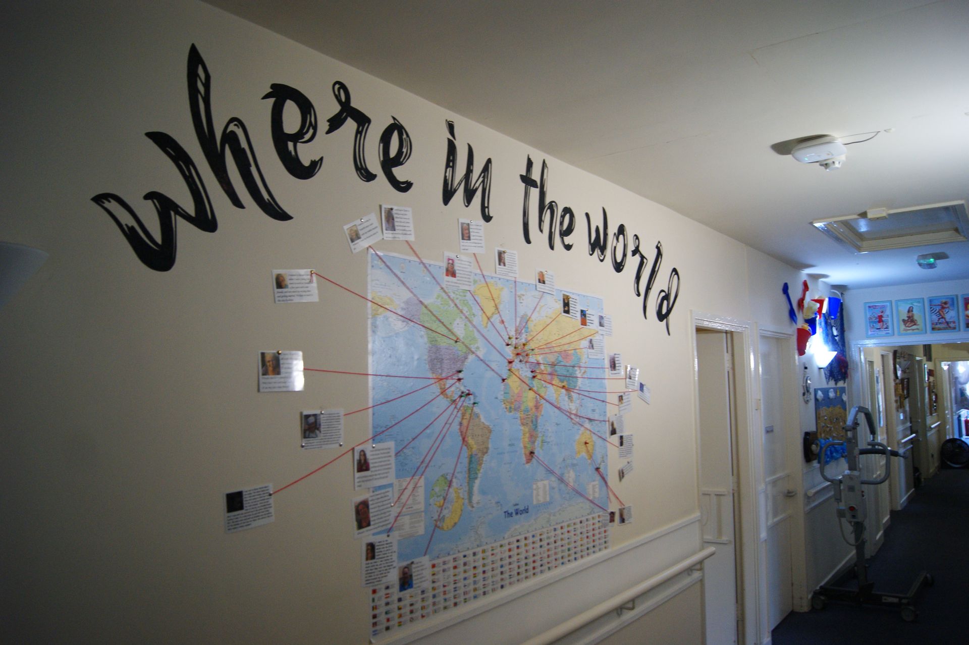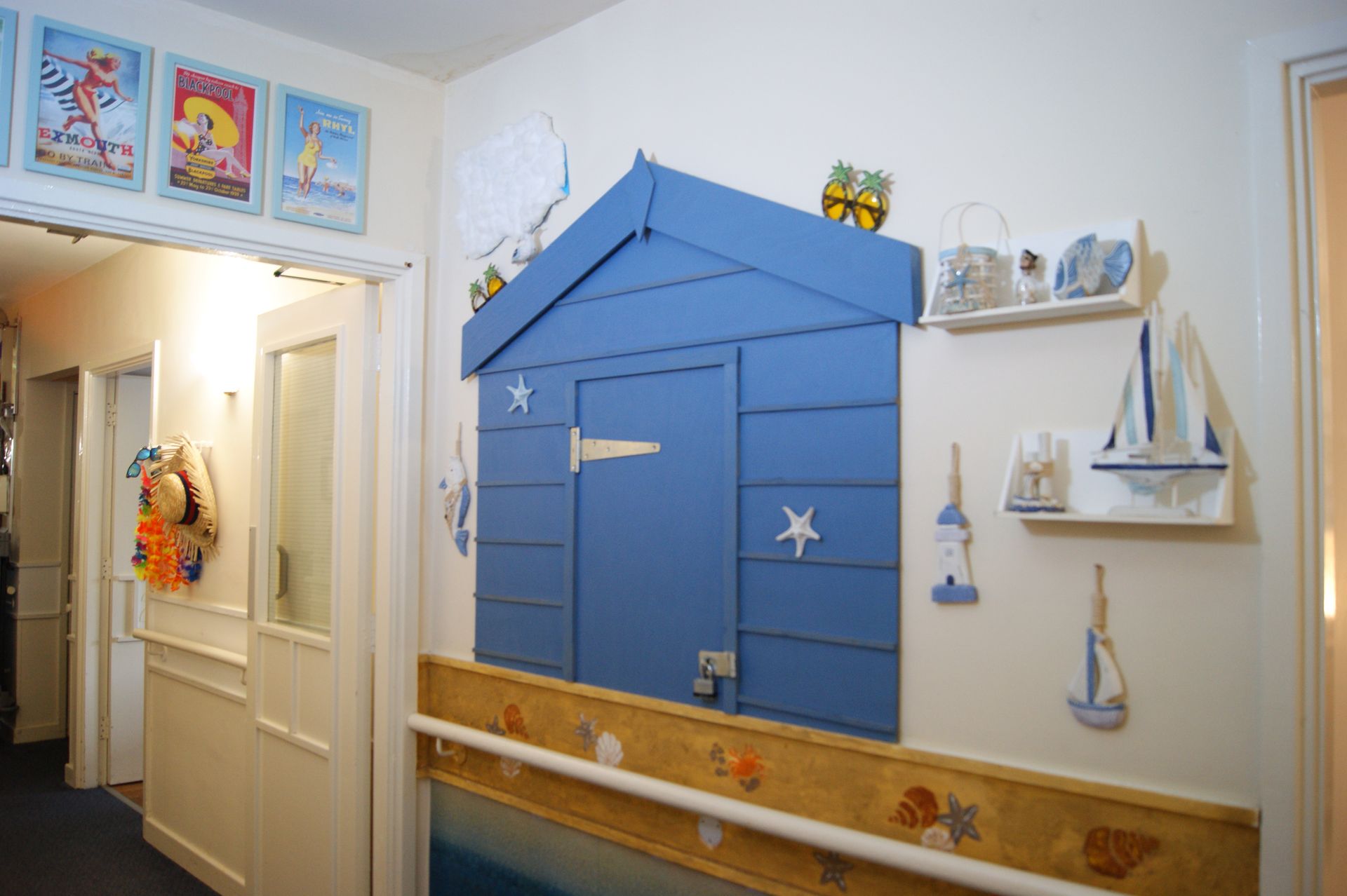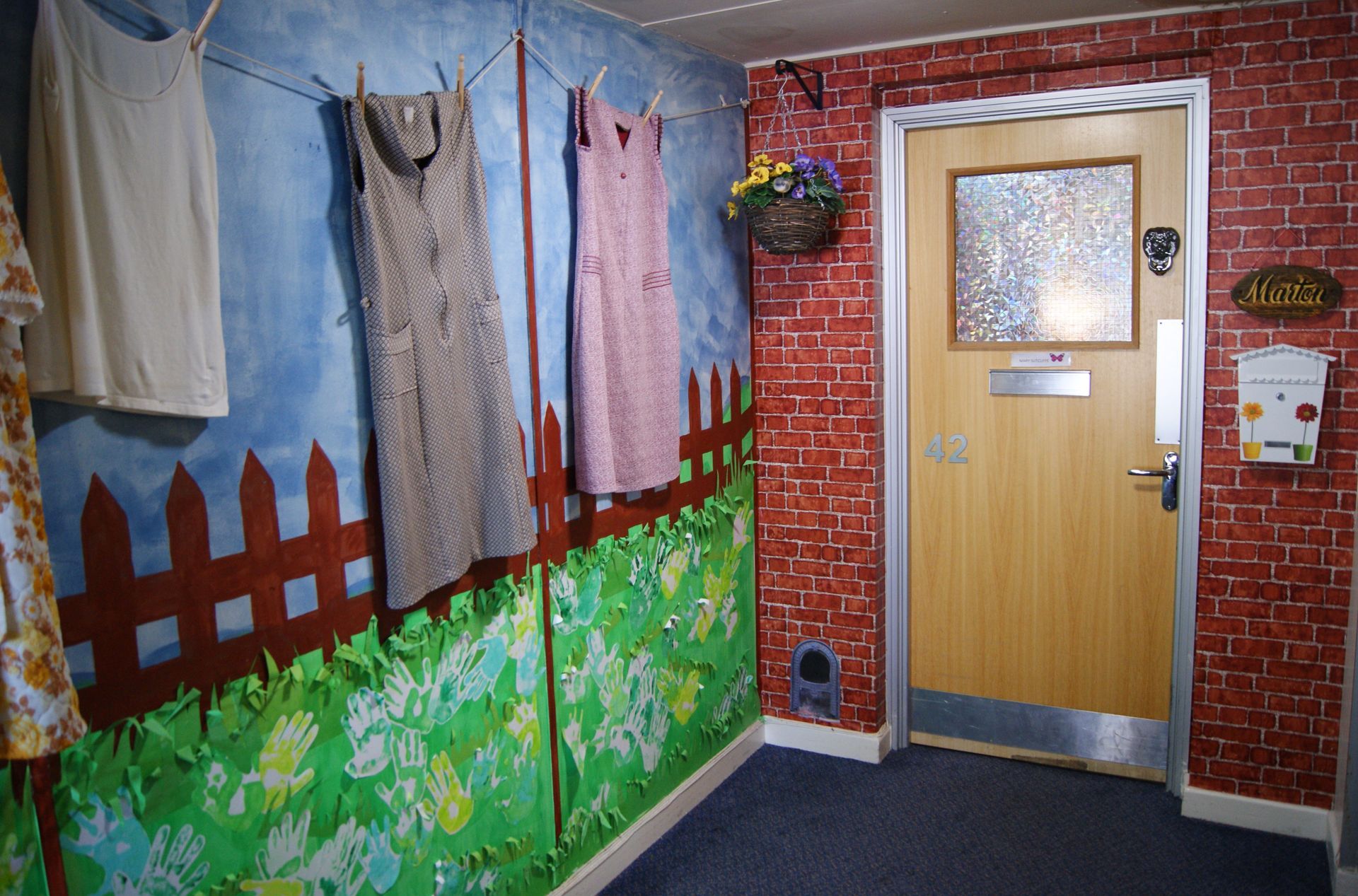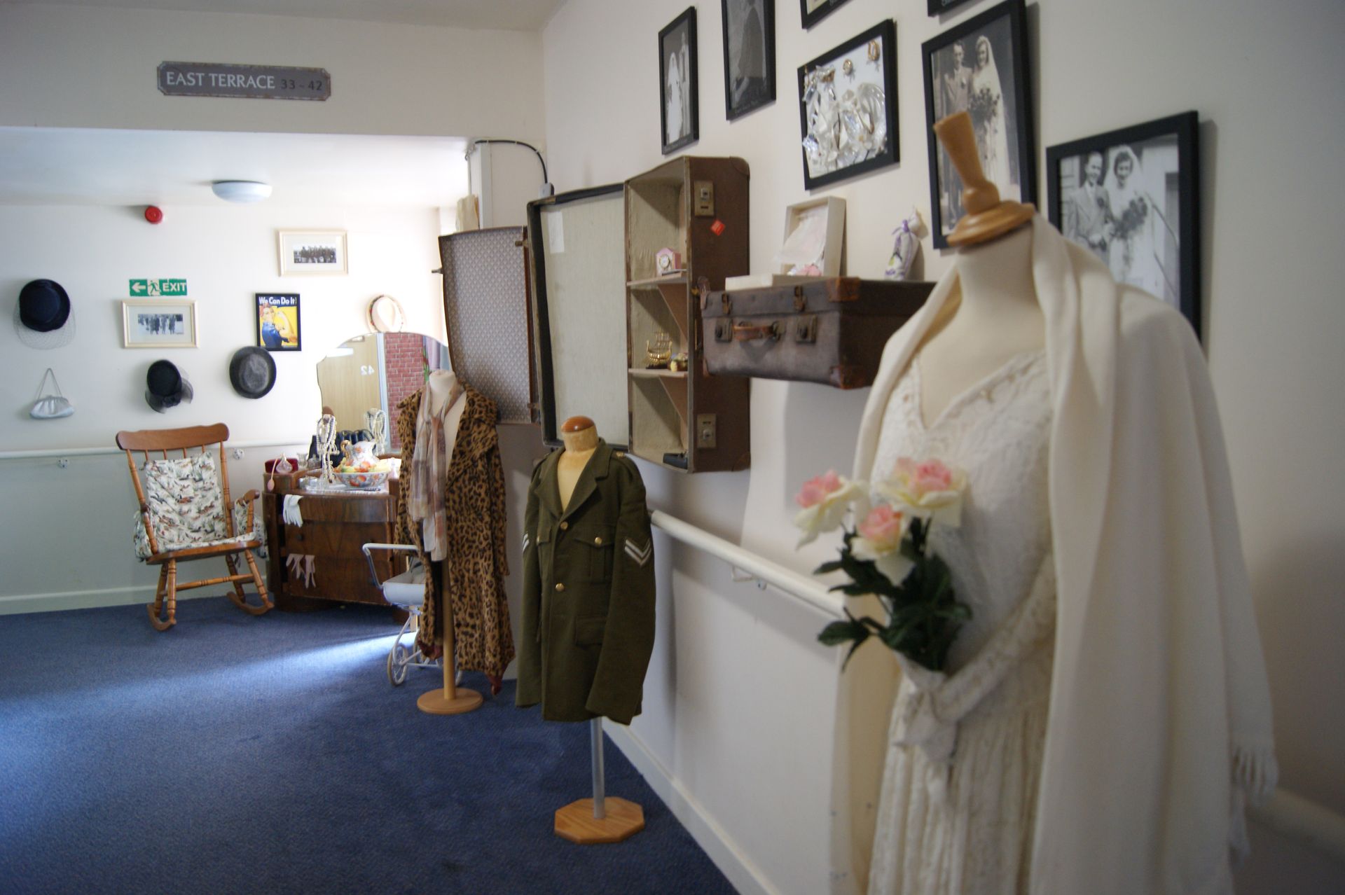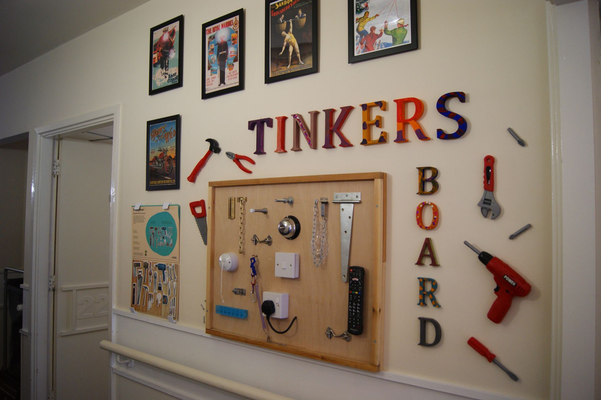 We adorn our walls with craft items from our service users art classes, and tactile apparatus for sensory stimulation. We also have a Nursery station complete with empathy dolls, perfect for doll therapy and a Rummage Corner decorated with a vintage dresser, hats and jewellery to interact with. We have window baskets and flowers for arranging; a Tinker's Board for active fingers and a complete outdoor washing line, to name but a few.